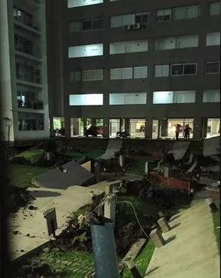 Según comentó Infobae, las fuentes de Bomberos informaron que en el subsuelo del complejo se desprendió parte de la losa en un área aproximada de 50 por 70 metros. Al momento del derrumbe la empresa constructora se encontraba ejecutando trabajos de rafacción debido a filtraciones de agua: «El patio era como una pileta llena de tierra. Eso cedió porque dejaron los pozos abiertos y con la lluvia, cedió. Ahora nos encontramos con este panorama», explicó un vecino afectado.